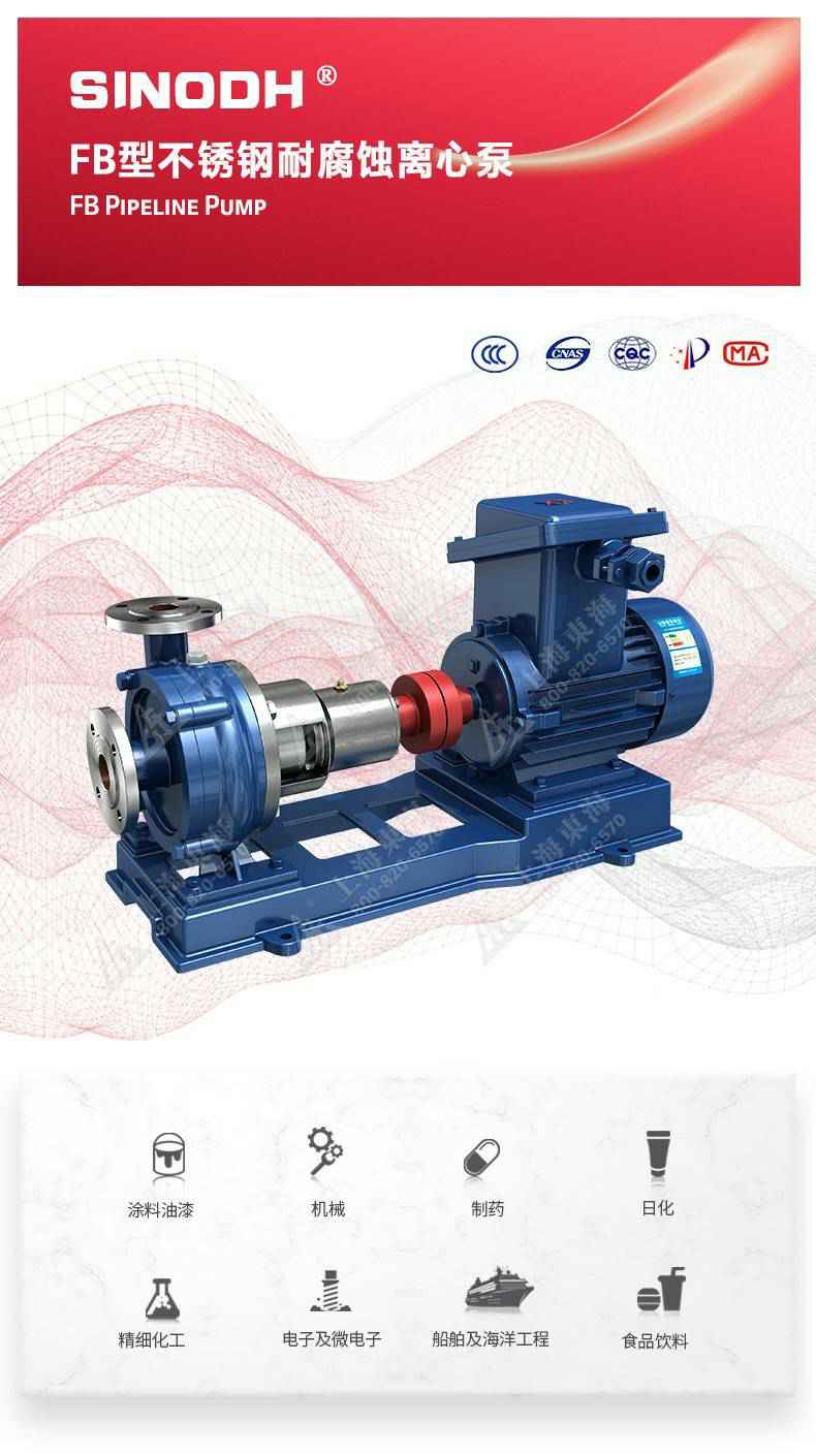 FB型不锈钢单级单吸悬臂式耐腐蚀离心泵,为呼和浩特袁骏生态旅游项目有限公司自主研发生产。本系列产品适用于输送不含固体颗粒,有腐蚀性液体。被输送介质温度为-20℃~200℃,泵的进口压力不能大于0.2MPa,广泛用于石油、化工、冶金、合成纤维、制药、食品、酿造等工业部门,也可供工矿、企业及城市供水、排水之用。