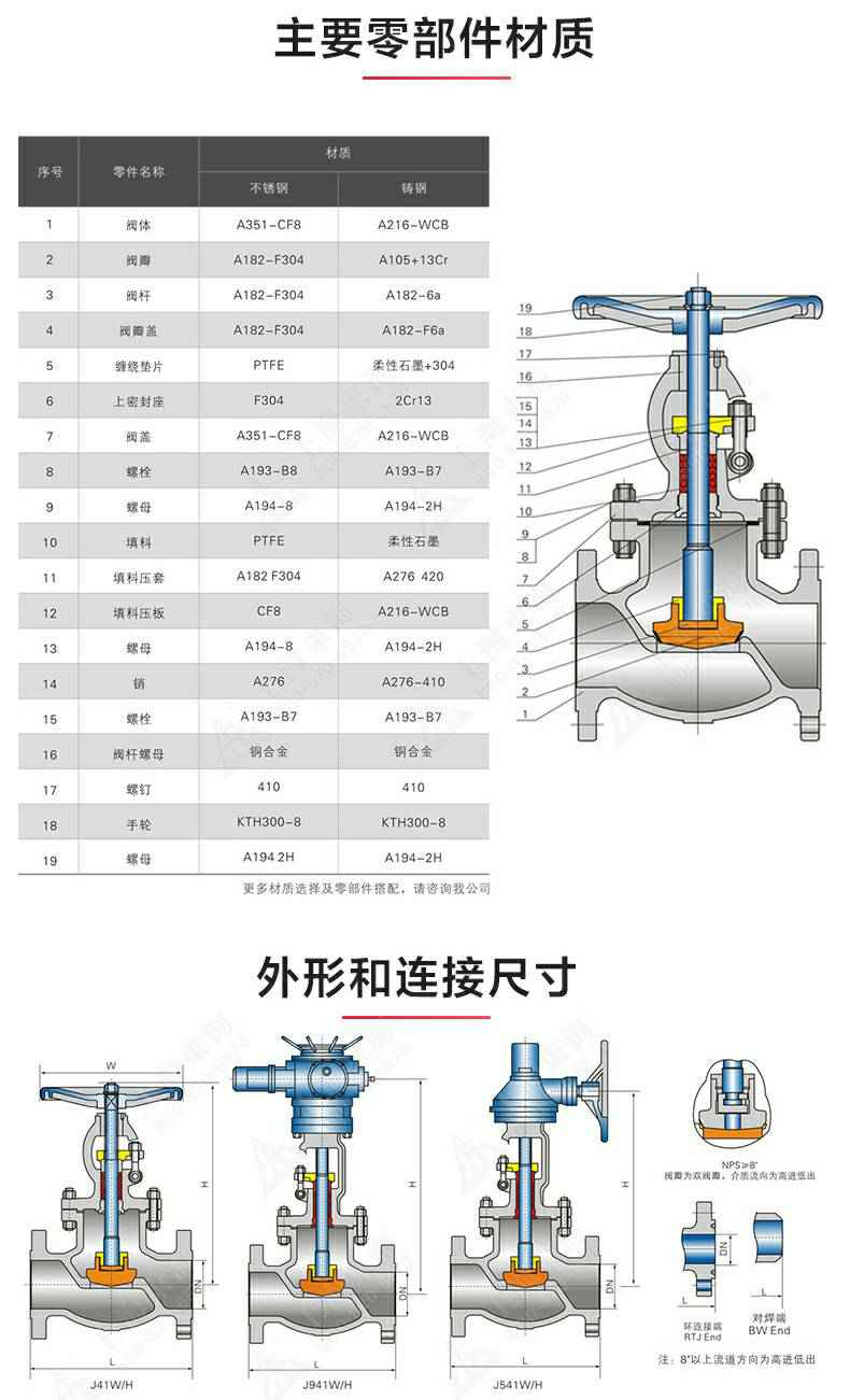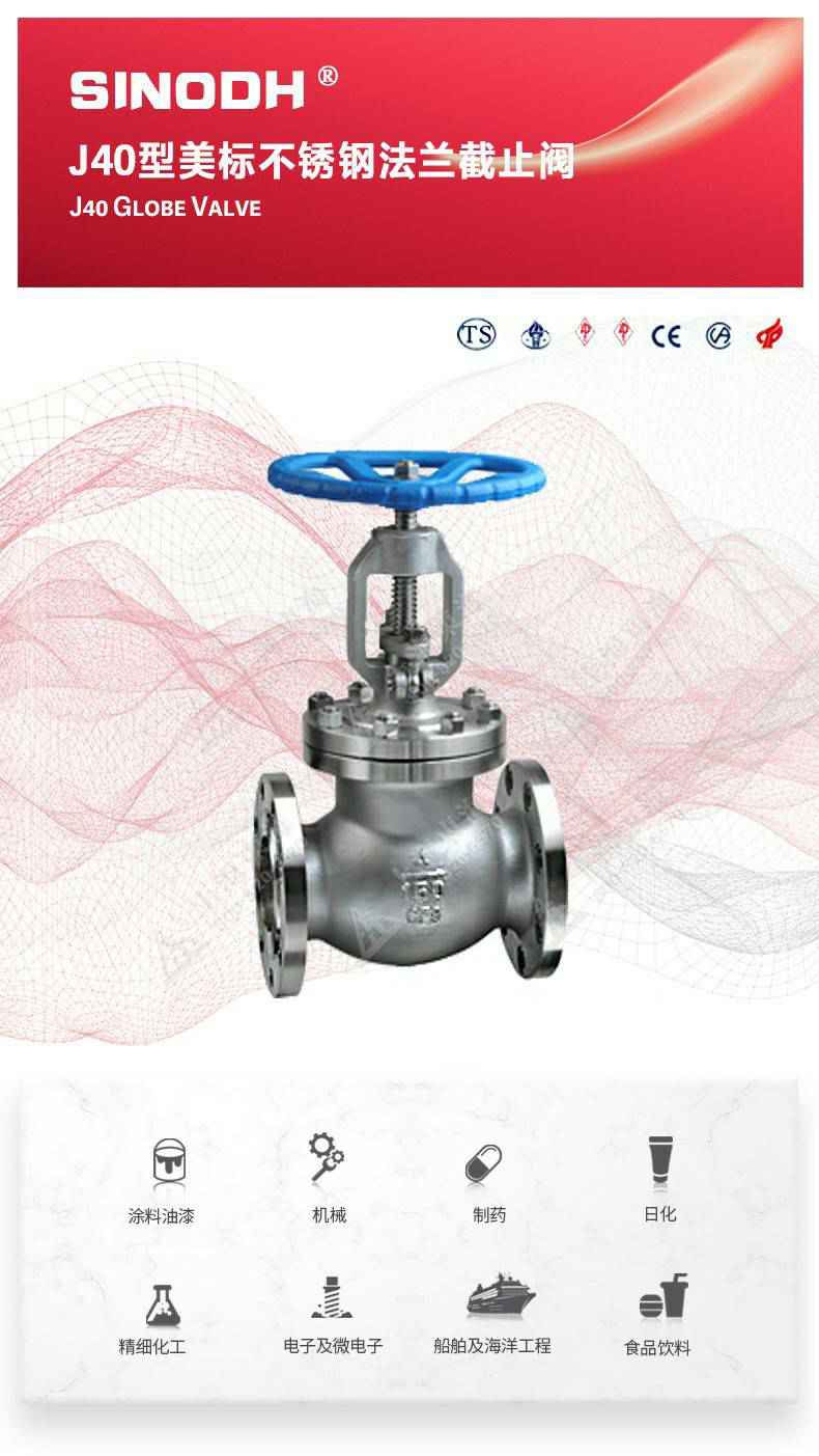 J40型美标不锈钢截止阀,为呼和浩特袁骏生态旅游项目有限公司自主研发生产。本产品的设计制造符合美国国家标准ANSIB16.34,美国石油学会标准AP1 6D和AP I 600要求,产品结构紧凑密、刚性好、封性性能优秀是一种最常见的启闭阀,利用闸板的上下工作来接通(全开)和截断(全关)管道中的流体介质。