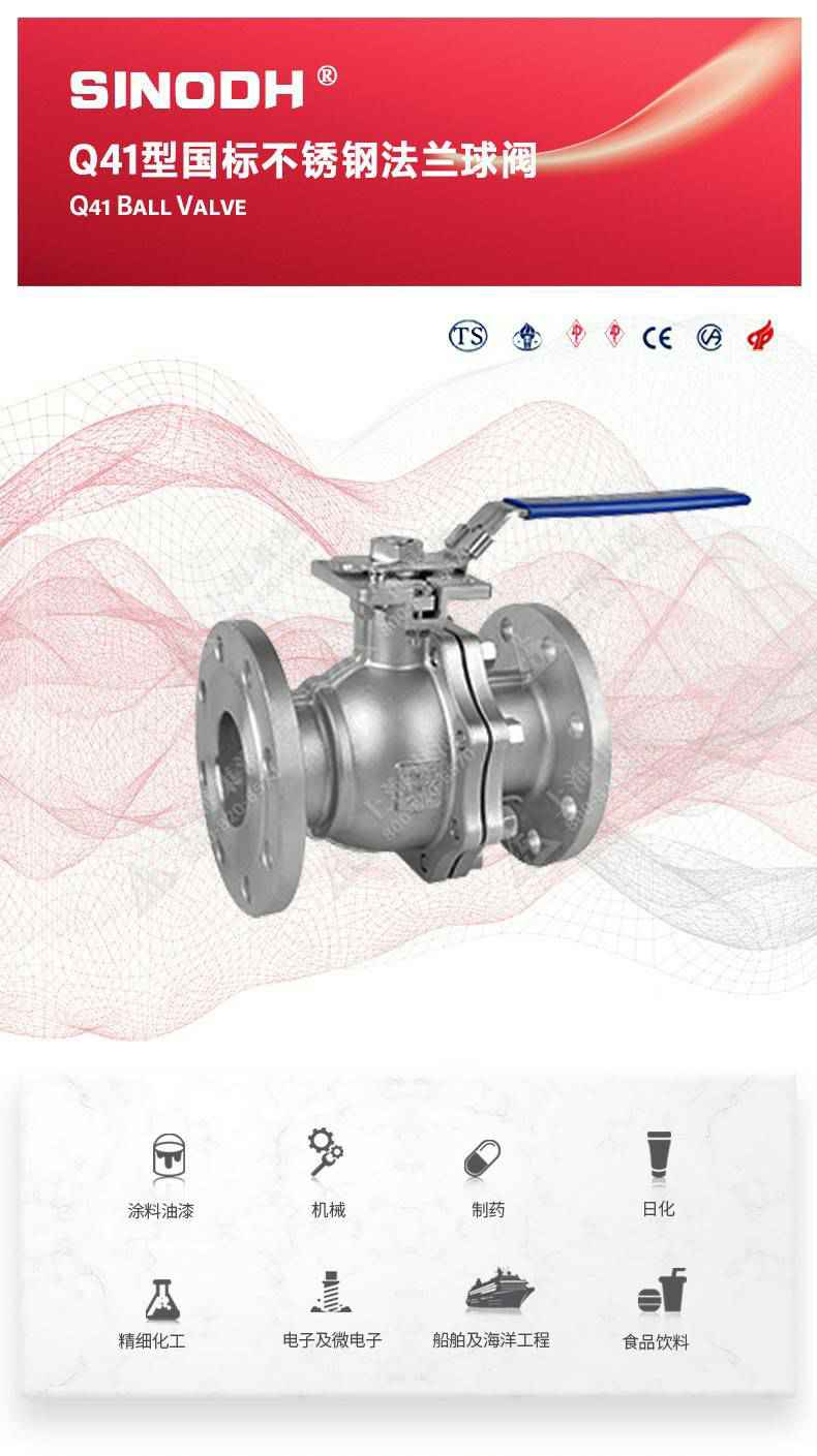 Q41型国标不锈钢法兰球阀,为呼和浩特袁骏生态旅游项目有限公司自主研发生产。本产品设计制造标准符合GB/T12237、GB/T 1 2224标准该产品的球体在介质压力作用下,球体能产生-定的位移并紧压在出口端的密封面上,保证出口端密封。适用于水、溶剂、酸和天然气等-般工业介质,也适用于工况恶劣的介质,如氧气、过氧化氢、甲烷和乙烯等介质。