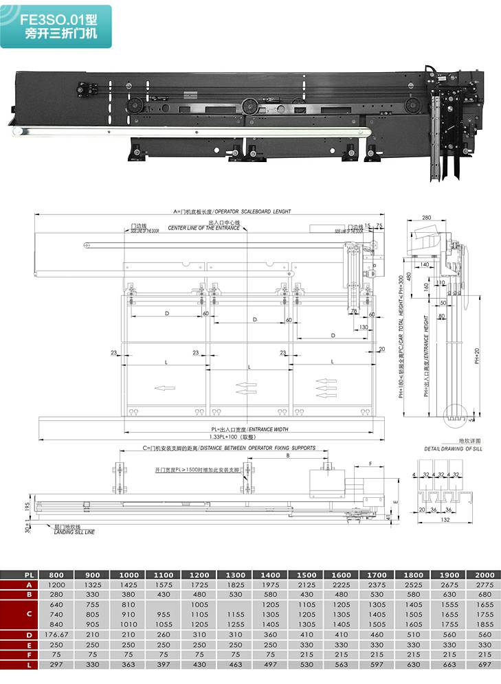 FE3SO.01型旁开三折门机
